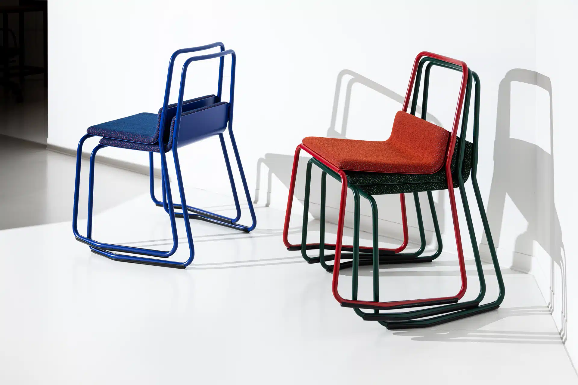 If a chair could float, it would be LEVE. Light in name yet bold in presence, its sculptural silhouette redefines the concept of seating. A balance between fluidity and structure, it appears almost ethereal—an airy metal composition that adapts, transforms, and inspires. Customization is at its core. LEVE is presented with Kvadrat Sprinkles fabrics but can be fully tailored to suit any space, offering a selection of any fabric and any RAL color. Whether as a bold statement piece or arranged in conversation, LEVE does more than occupy a space. It defines it.